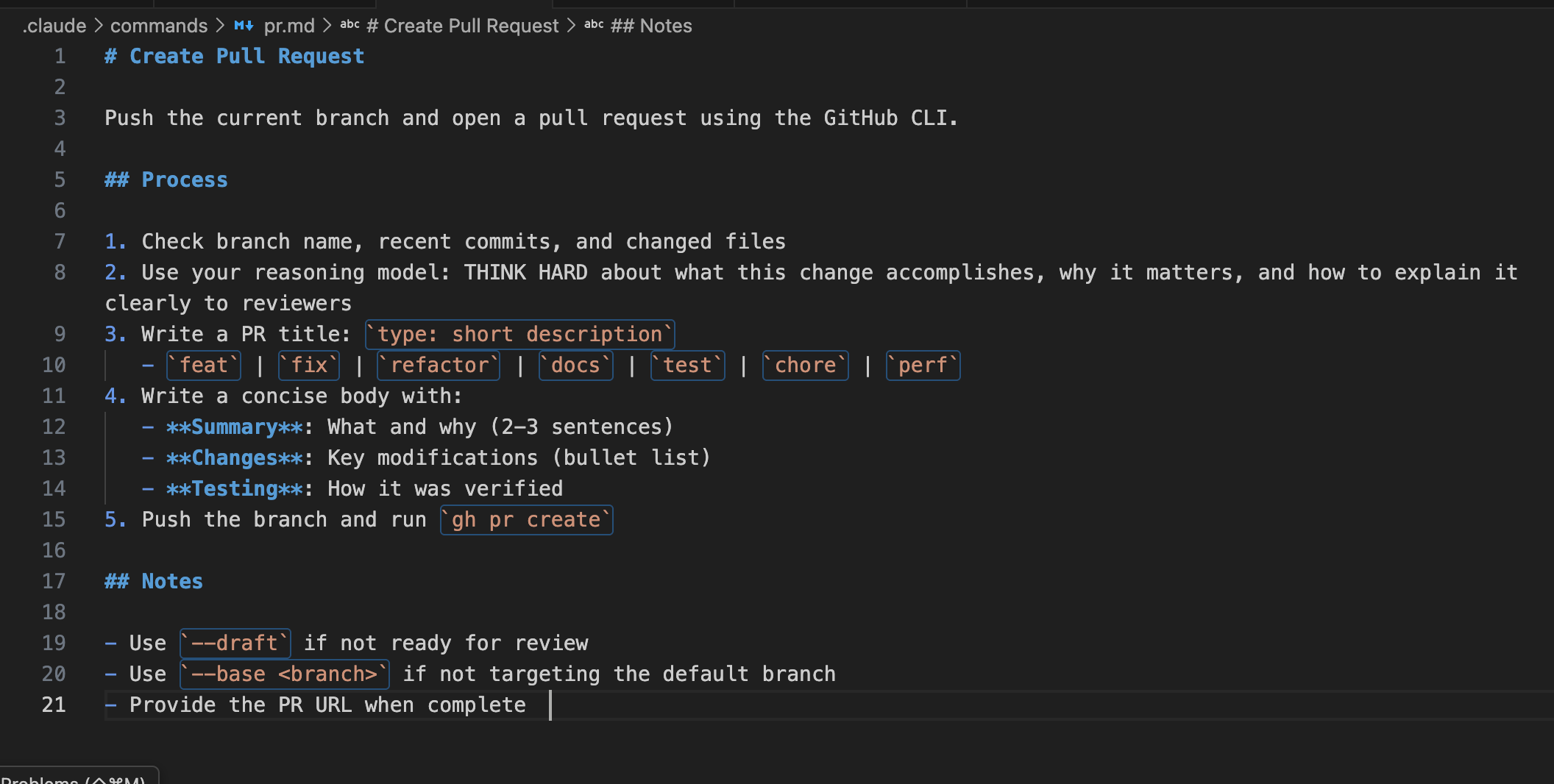 Here’s an example: a workflow I use for creating pull requests: